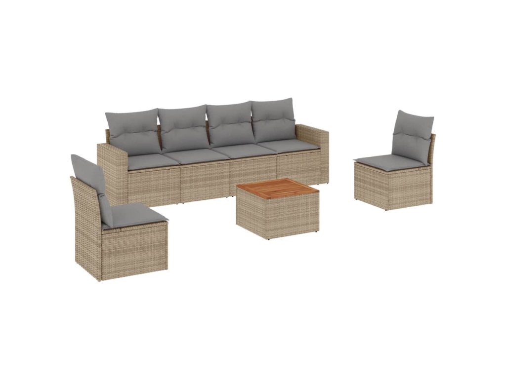7dílná zahradní sedací souprava s poduškami béžová polyratan 3224071