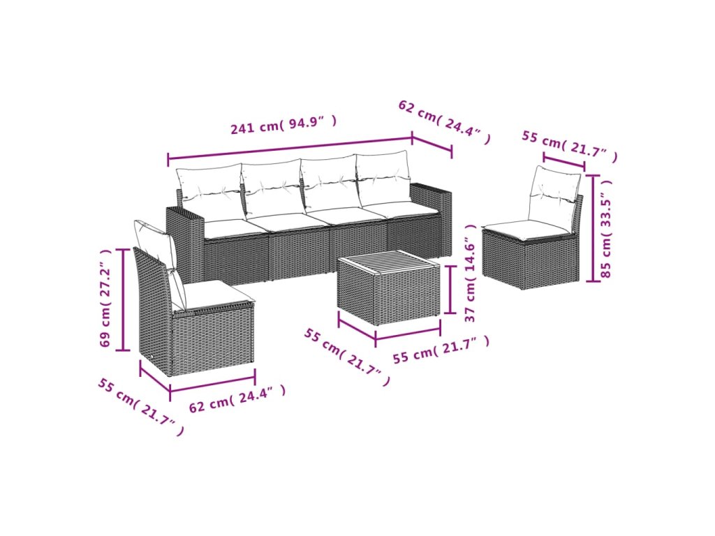 Tato zahradní sedací souprava je dokonalým doplňkem vaší zahrady, terasy nebo dvorku a poskytne vám pohodlné a příjemné místo, kde si můžete povídat s rodinou a přáteli nebo jen tak odpočívat a užívat si pobyt venku.