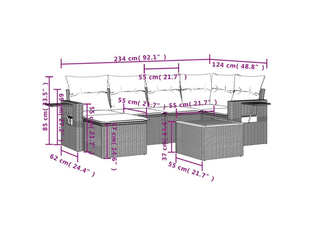 7dílná zahradní sedací souprava s poduškami béžová polyratan 3224666