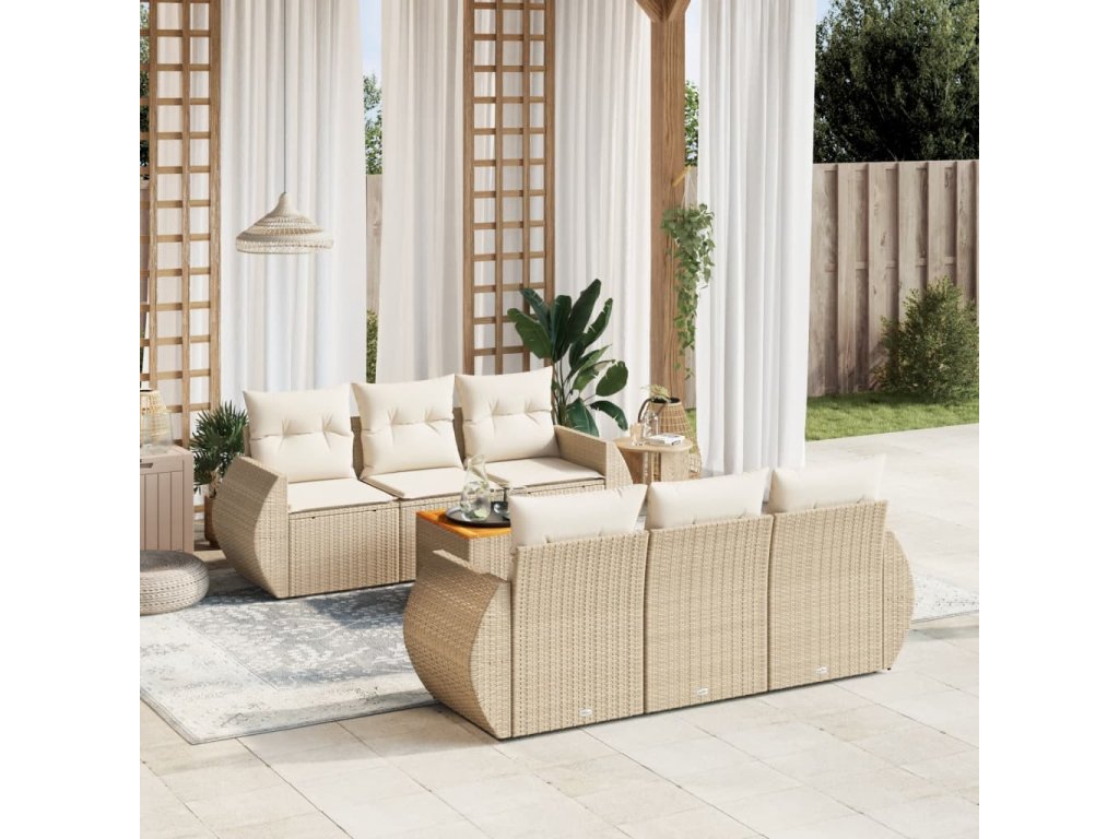 7dílná zahradní sedací souprava s poduškami béžová polyratan 3224896
