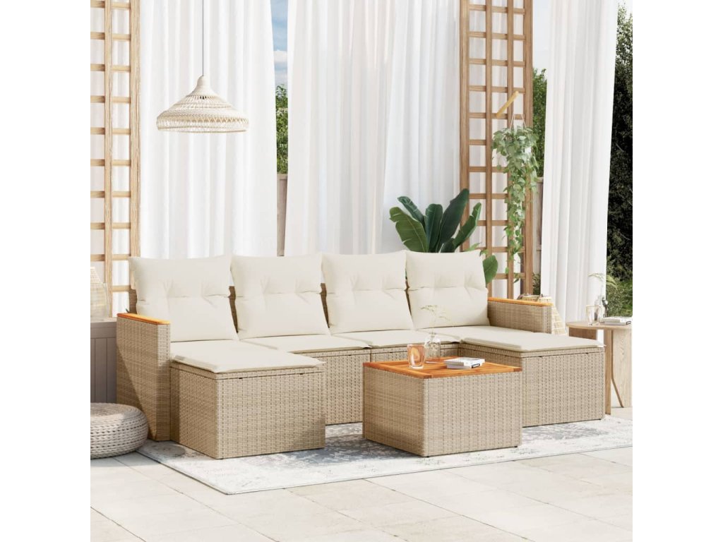 7dílná zahradní sedací souprava s poduškami béžová polyratan 3226226