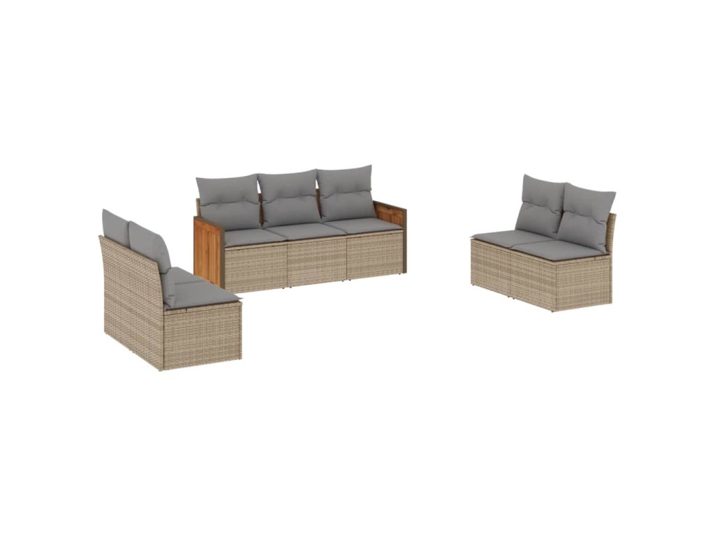 7dílná zahradní sedací souprava s poduškami béžová polyratan 3227557