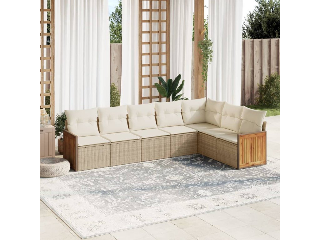 7dílná zahradní sedací souprava s poduškami béžová polyratan 3227710