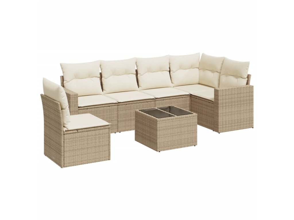 7dílná zahradní sedací souprava s poduškami béžová polyratan 3251375