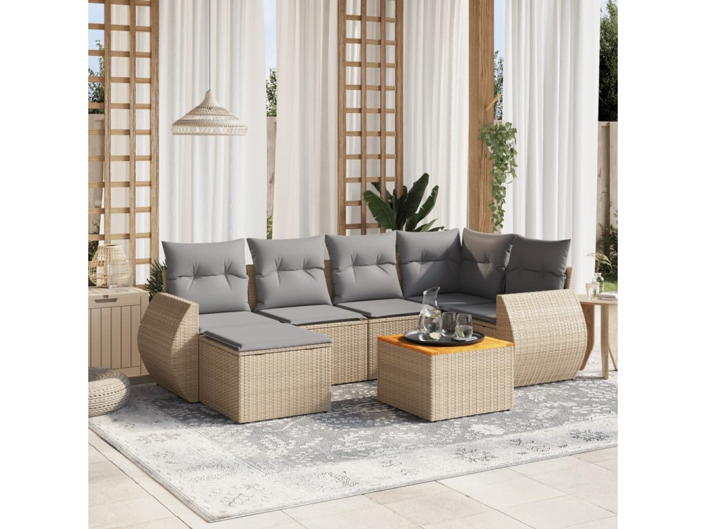 7dílná zahradní sedací souprava s poduškami béžová polyratan 3257438