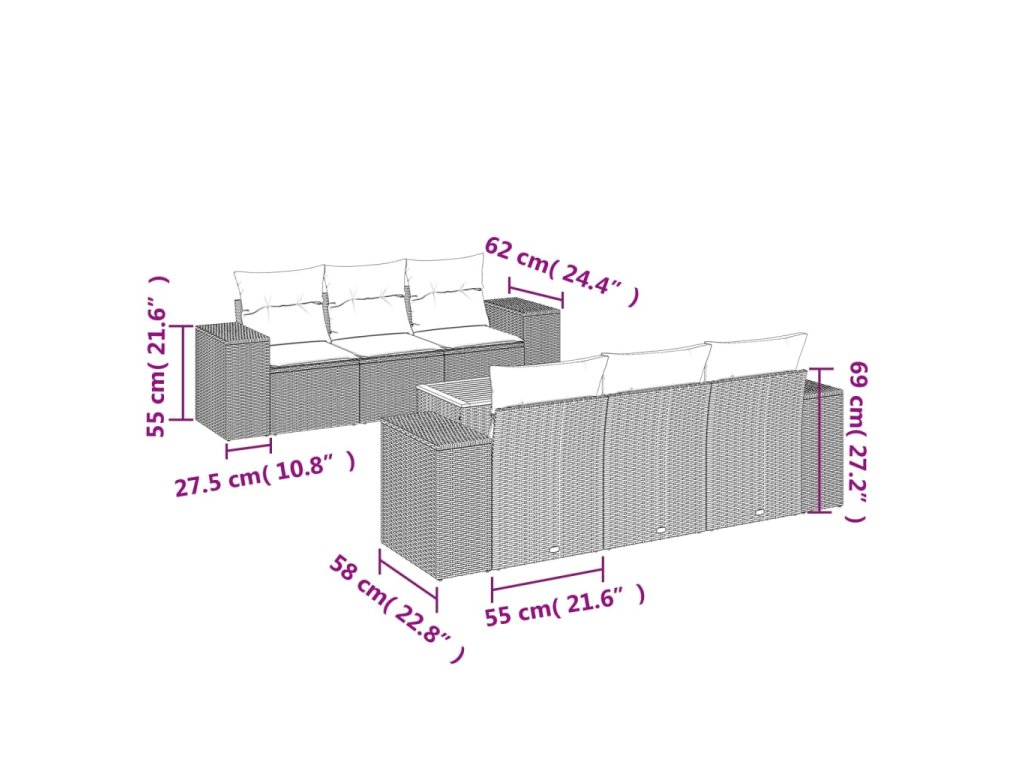 7dílná zahradní sedací souprava s poduškami béžová polyratan 3257668