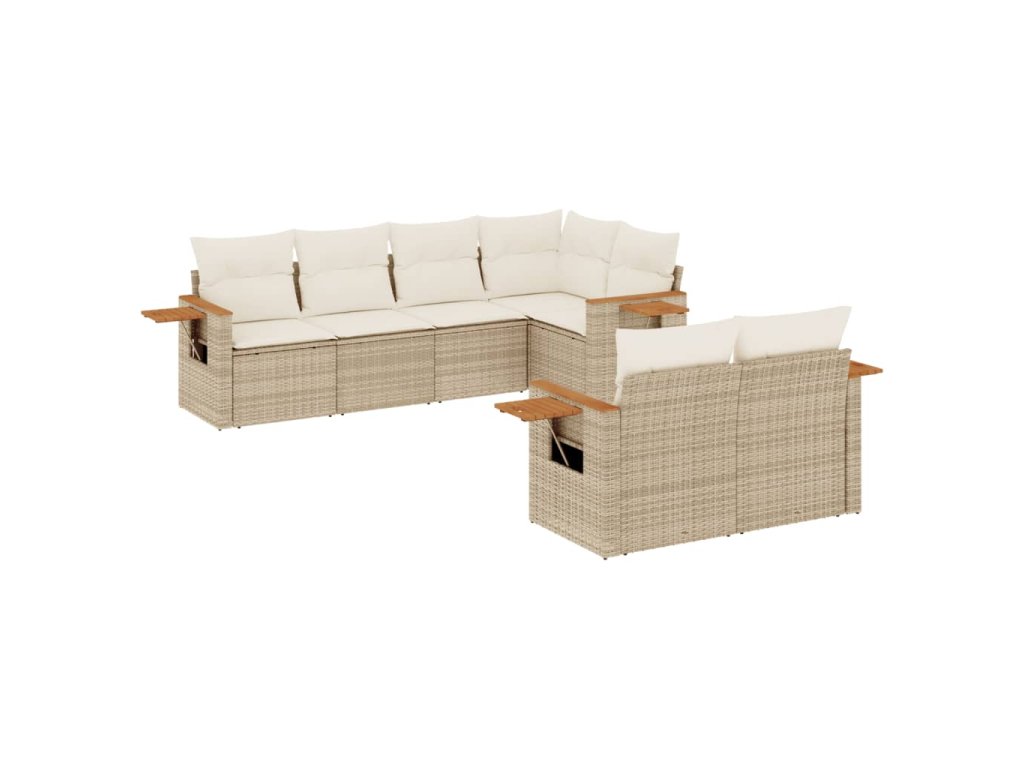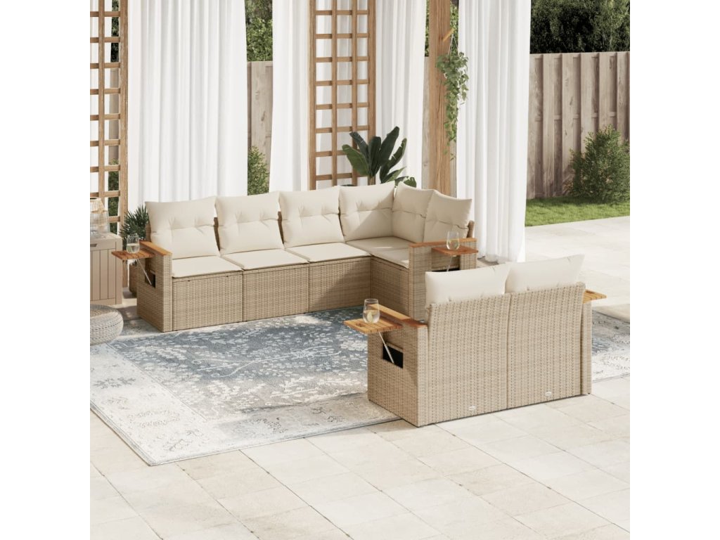 7dílná zahradní sedací souprava s poduškami béžová polyratan 3259384