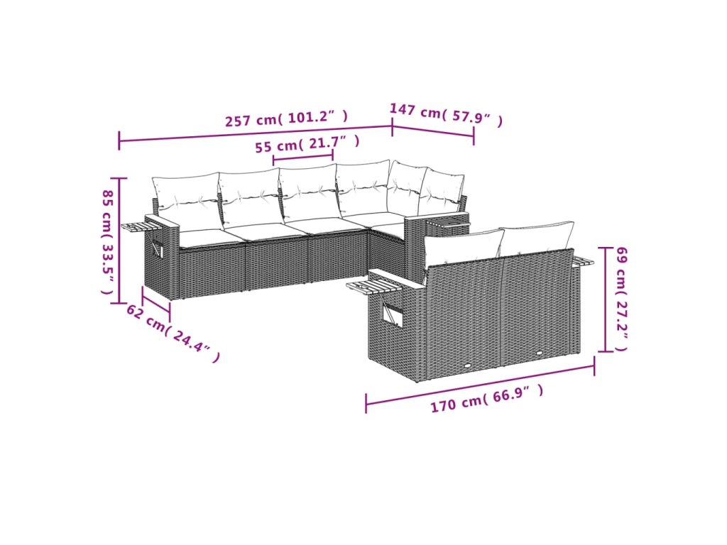 Tato zahradní sedací souprava je dokonalým doplňkem vaší zahrady, terasy nebo dvorku a poskytne vám pohodlné a příjemné místo, kde si můžete povídat s rodinou a přáteli nebo jen tak odpočívat a užívat si pobyt venku.