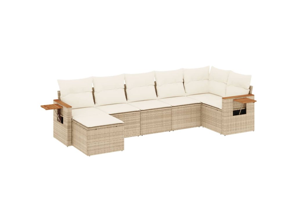 7dílná zahradní sedací souprava s poduškami béžová polyratan 3259433