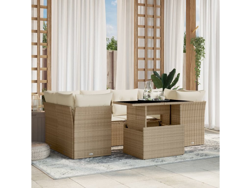 7dílná zahradní sedací souprava s poduškami béžová polyratan 3266378