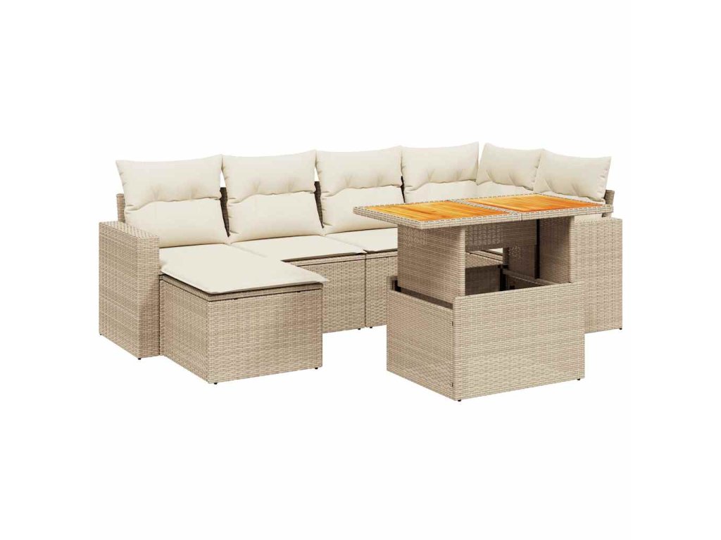 7dílná zahradní sedací souprava s poduškami béžová polyratan 3271415