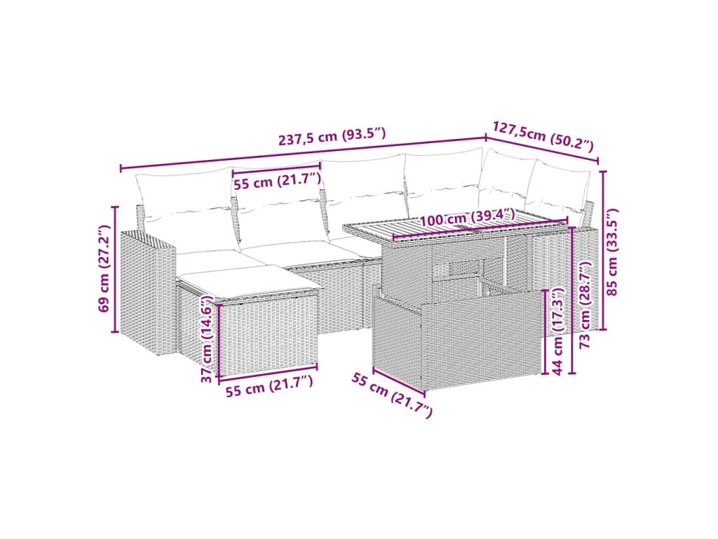 Tato zahradní sedací souprava je dokonalým doplňkem vaší zahrady, terasy nebo dvorku a poskytne vám pohodlné a příjemné místo, kde si můžete povídat s rodinou a přáteli nebo jen tak odpočívat a užívat si pobyt venku.