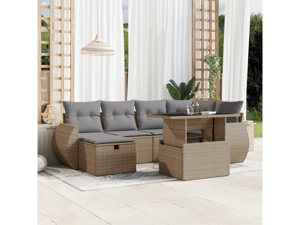 7dílná zahradní sedací souprava s poduškami béžová polyratan 3275139