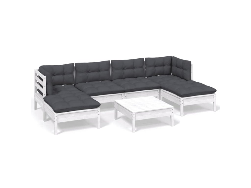 7dílná zahradní sedací souprava s poduškami bílá borovice 3097086