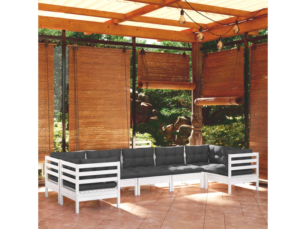 7dílná zahradní sedací souprava s poduškami bílá borovice 3097308