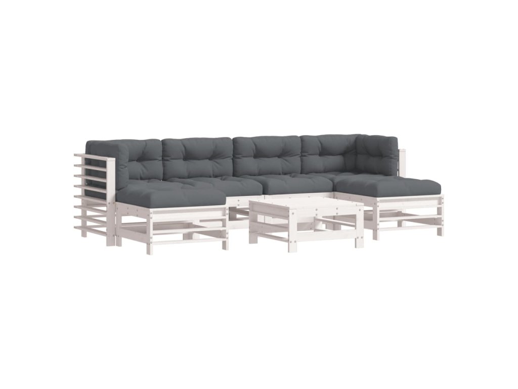 7dílná zahradní sedací souprava s poduškami bílá masivní dřevo 3185949