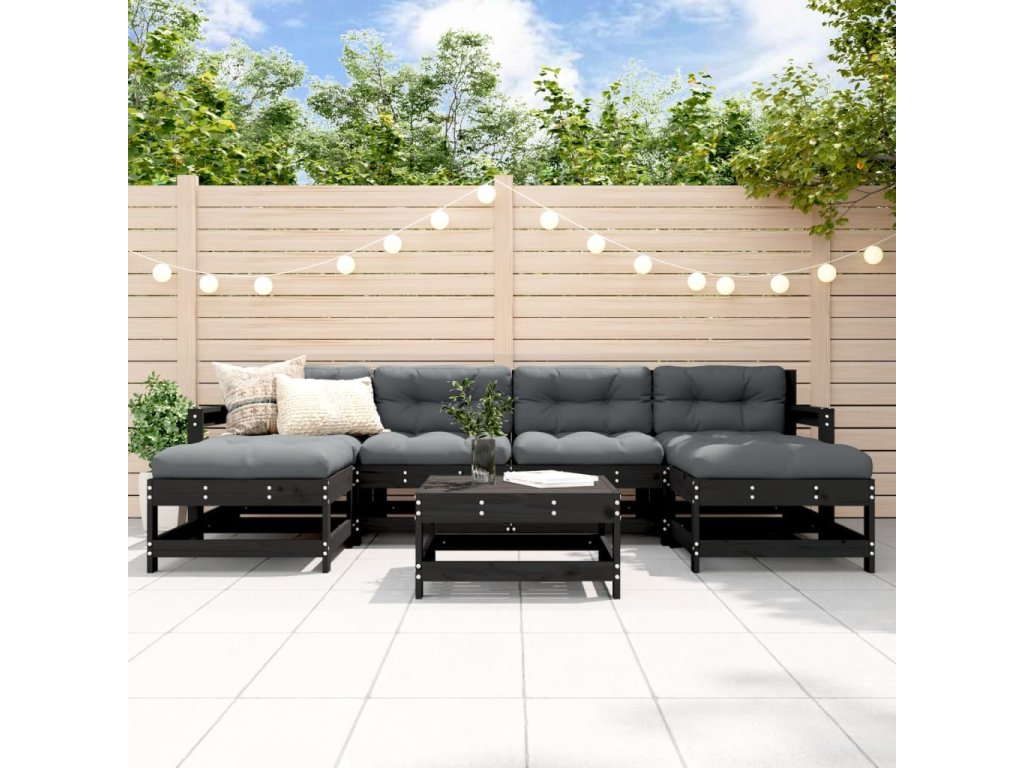 7dílná zahradní sedací souprava s poduškami černá masivní dřevo 3185945
