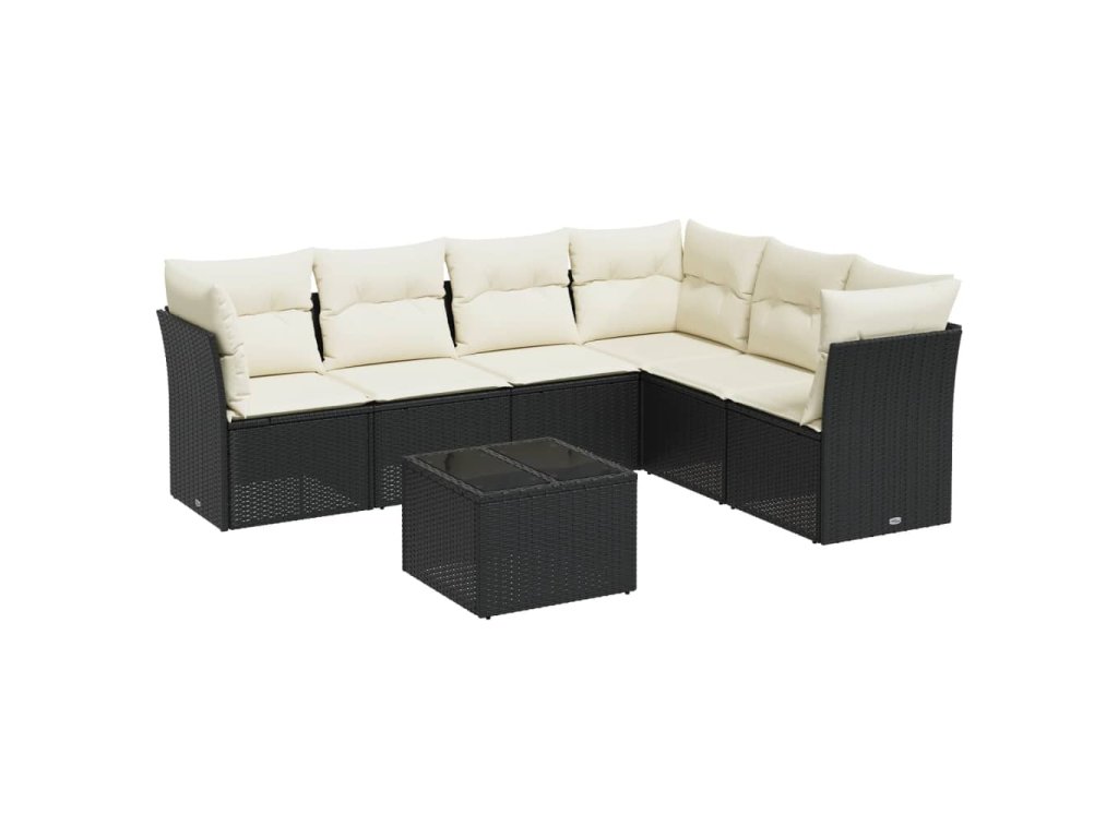 7dílná zahradní sedací souprava s poduškami černá polyratan 3217686