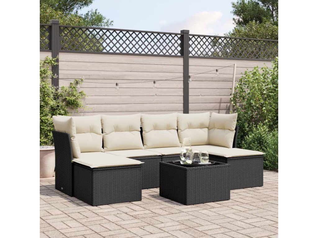 7dílná zahradní sedací souprava s poduškami černá polyratan 3218016
