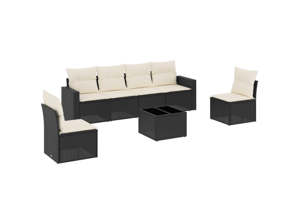 7dílná zahradní sedací souprava s poduškami černá polyratan 3218806