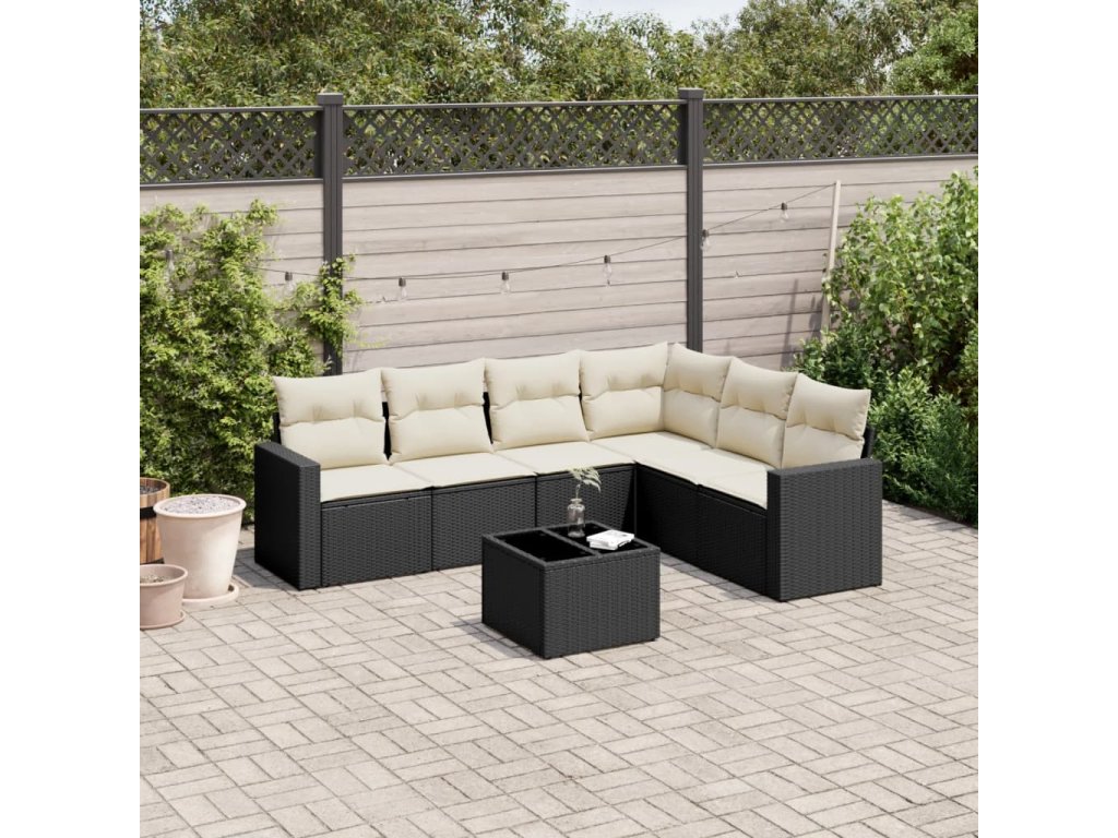 7dílná zahradní sedací souprava s poduškami černá polyratan 3219006