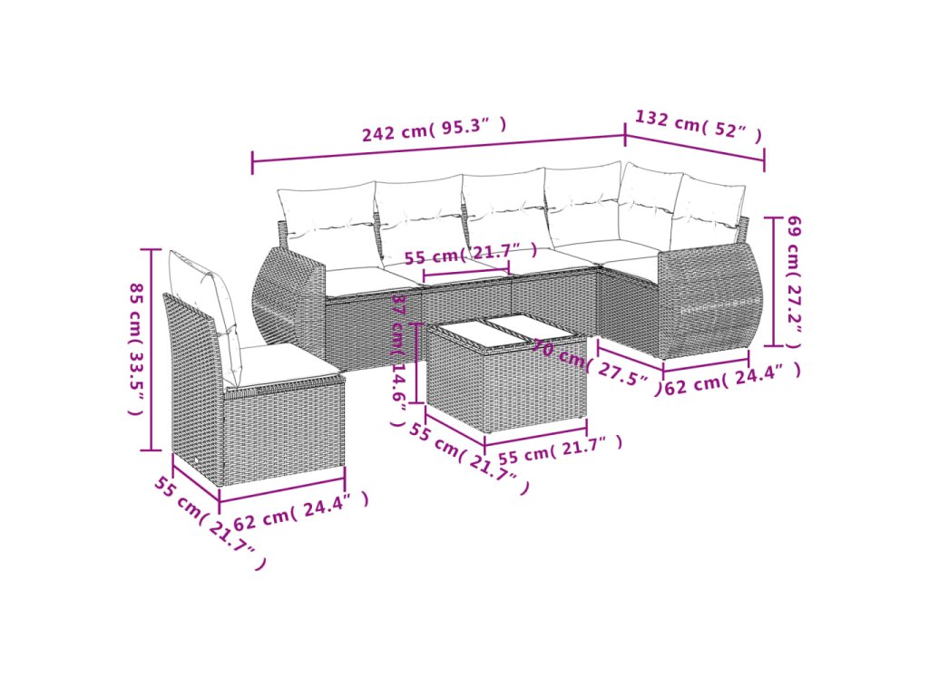 Tato zahradní sedací souprava je dokonalým doplňkem vaší zahrady, terasy nebo dvorku a poskytne vám pohodlné a příjemné místo, kde si můžete povídat s rodinou a přáteli nebo jen tak odpočívat a užívat si pobyt venku.