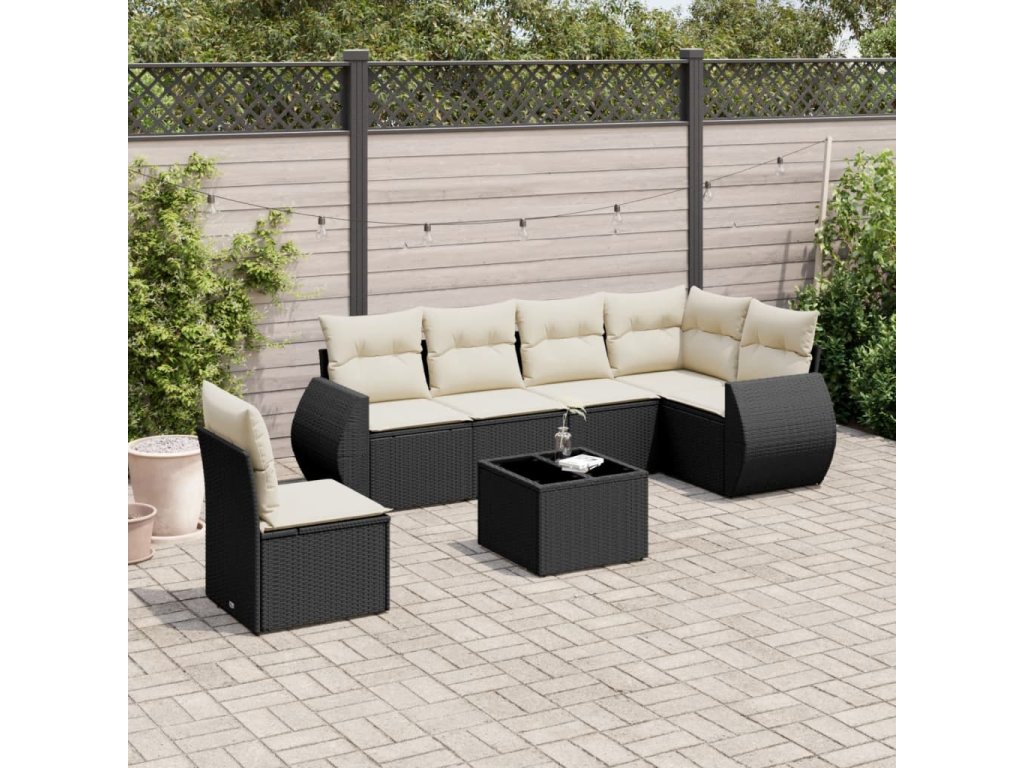7dílná zahradní sedací souprava s poduškami černá polyratan 3221435