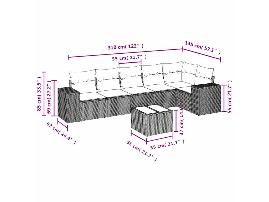 Tato zahradní sedací souprava je dokonalým doplňkem vaší zahrady, terasy nebo dvorku a poskytne vám pohodlné a příjemné místo, kde si můžete povídat s rodinou a přáteli nebo jen tak odpočívat a užívat si pobyt venku.