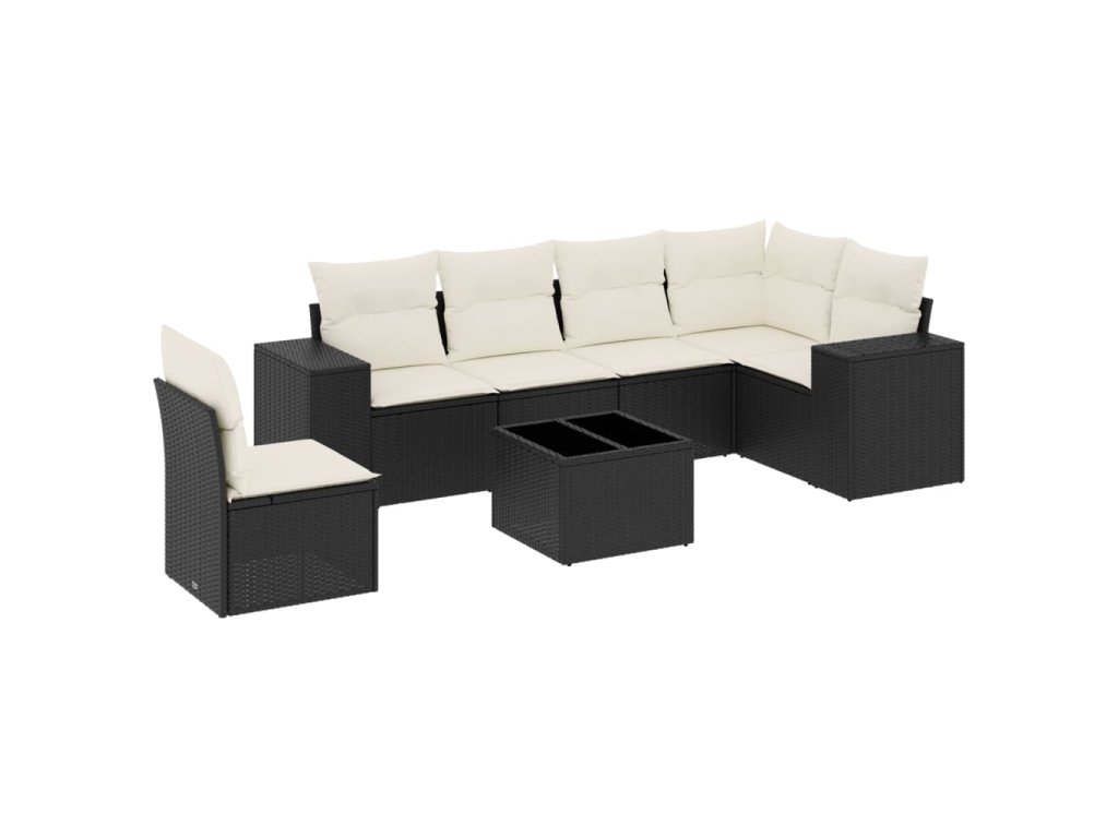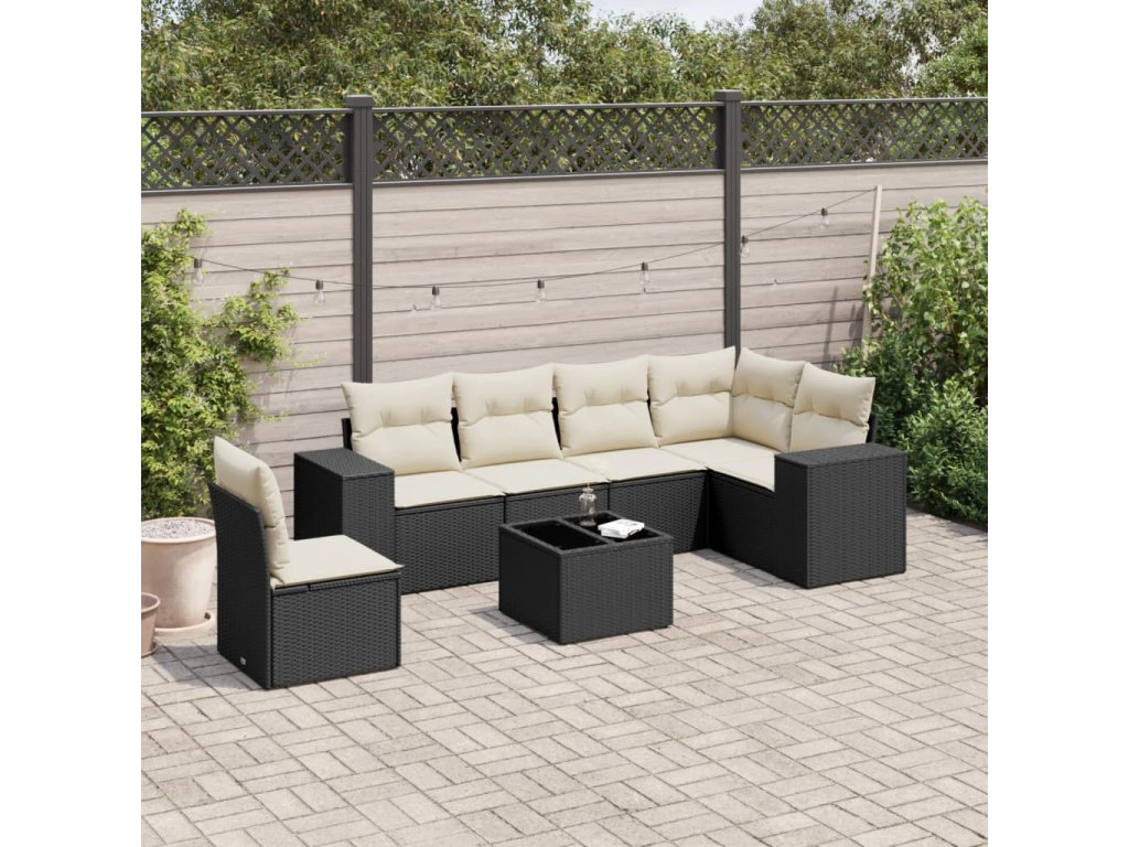 7dílná zahradní sedací souprava s poduškami černá polyratan 3222635