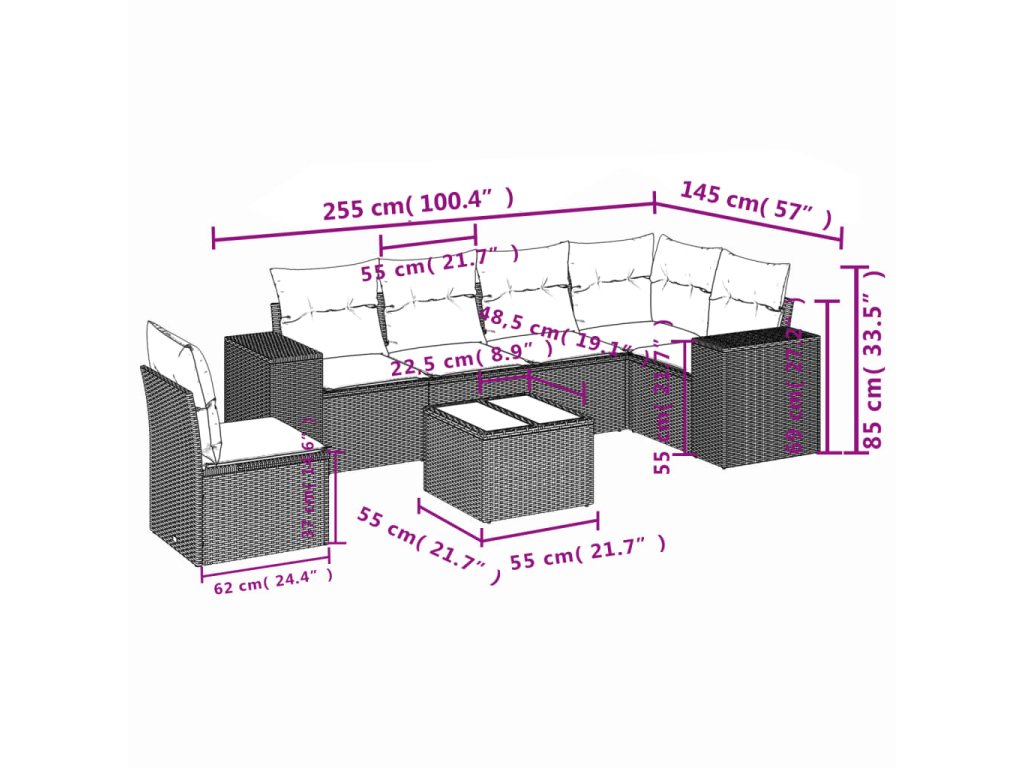 Tato zahradní sedací souprava je dokonalým doplňkem vaší zahrady, terasy nebo dvorku a poskytne vám pohodlné a příjemné místo, kde si můžete povídat s rodinou a přáteli nebo jen tak odpočívat a užívat si pobyt venku.