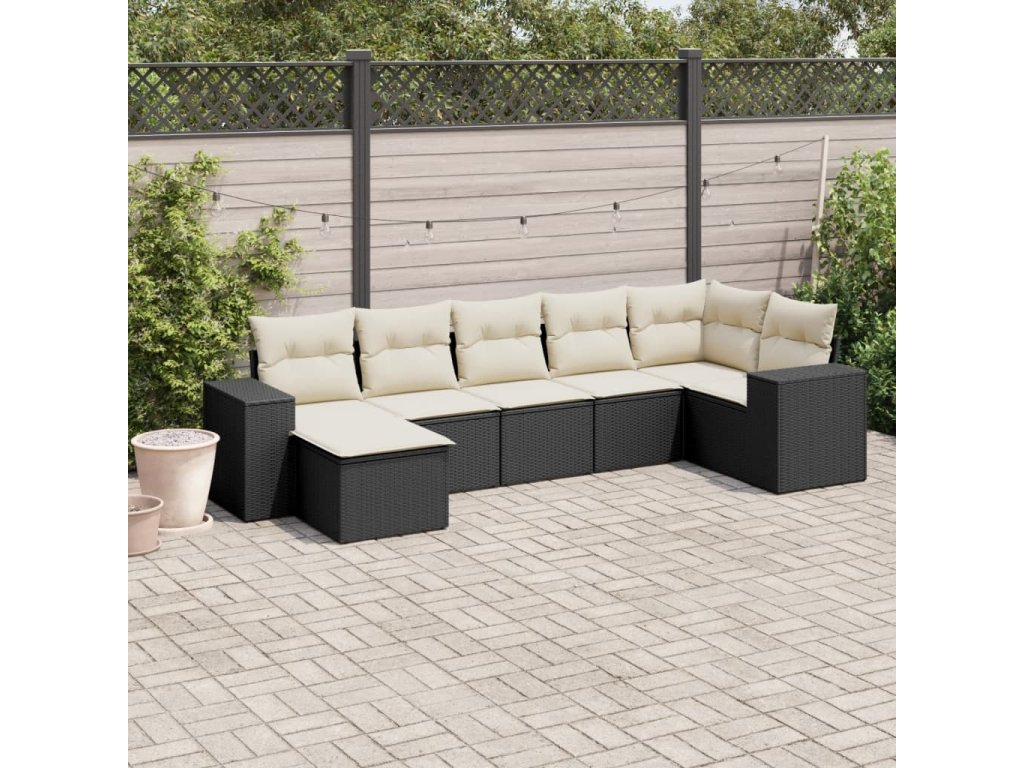 7dílná zahradní sedací souprava s poduškami černá polyratan 3222875