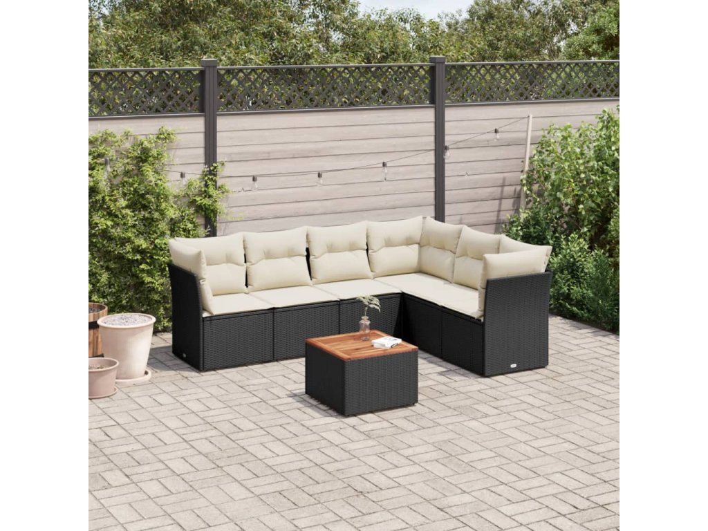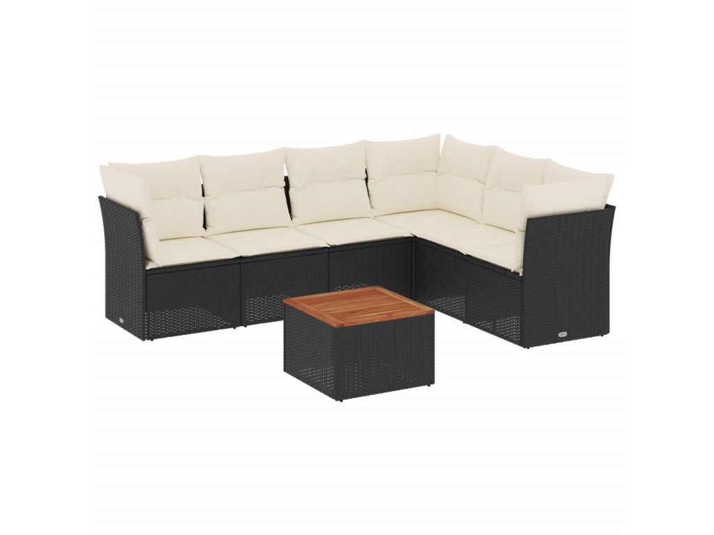 7dílná zahradní sedací souprava s poduškami černá polyratan 3223655