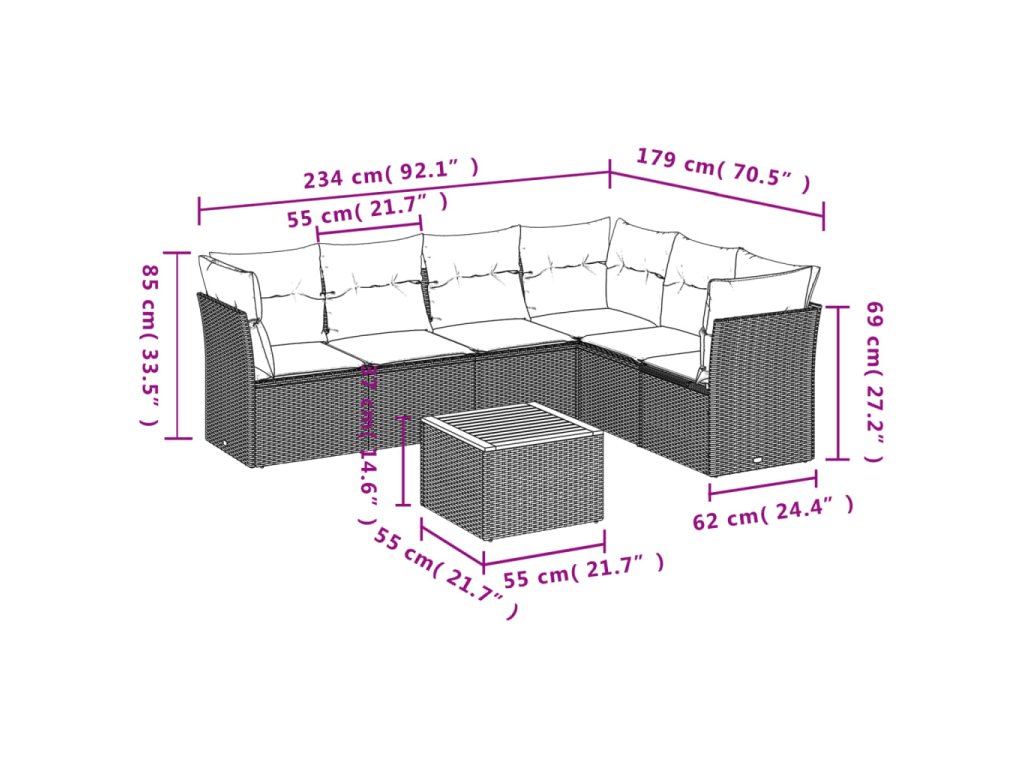 Tato zahradní sedací souprava je dokonalým doplňkem vaší zahrady, terasy nebo dvorku a poskytne vám pohodlné a příjemné místo, kde si můžete povídat s rodinou a přáteli nebo jen tak odpočívat a užívat si pobyt venku.