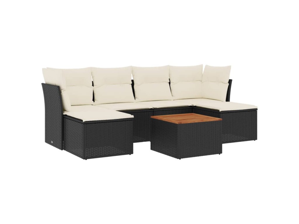 7dílná zahradní sedací souprava s poduškami černá polyratan 3223767