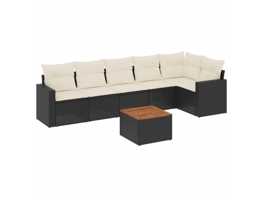 7dílná zahradní sedací souprava s poduškami černá polyratan 3224131