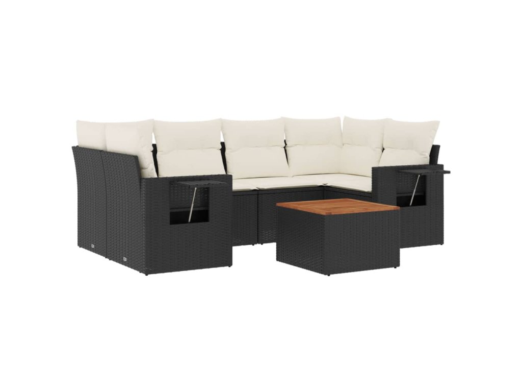 7dílná zahradní sedací souprava s poduškami černá polyratan 3224460