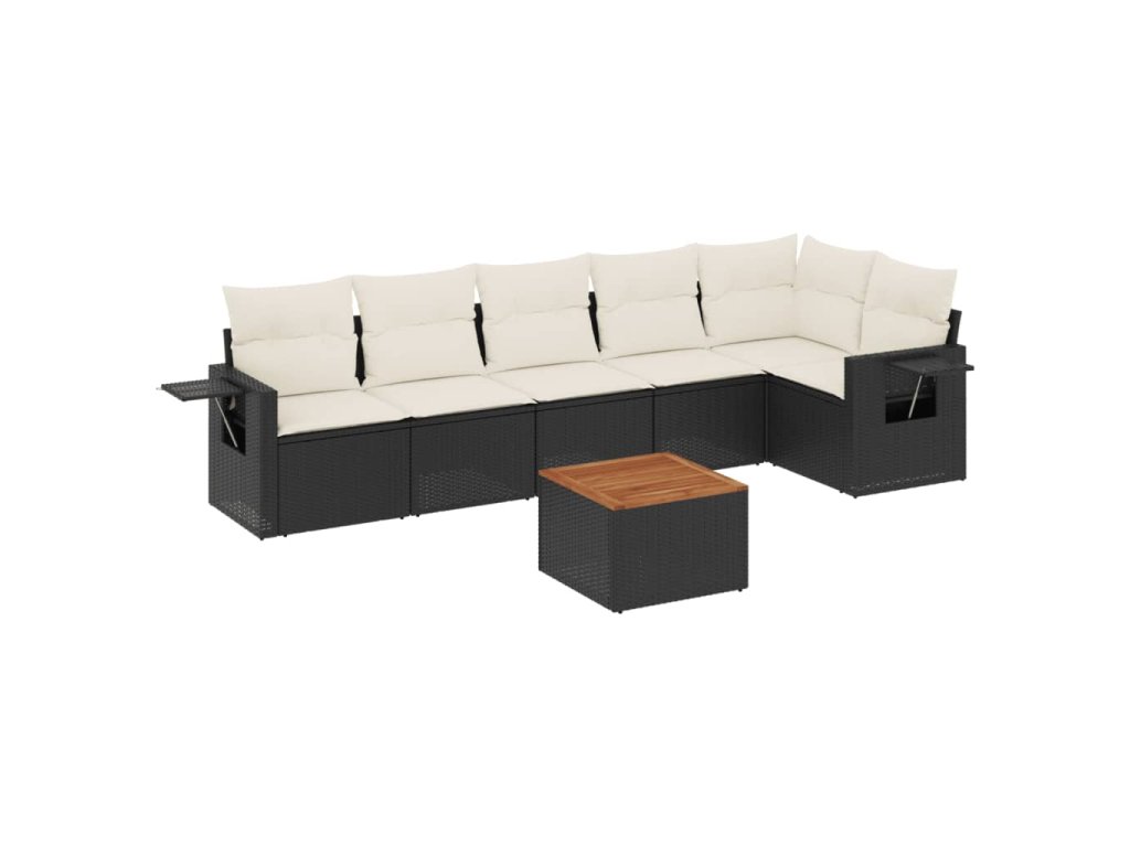7dílná zahradní sedací souprava s poduškami černá polyratan 3224572
