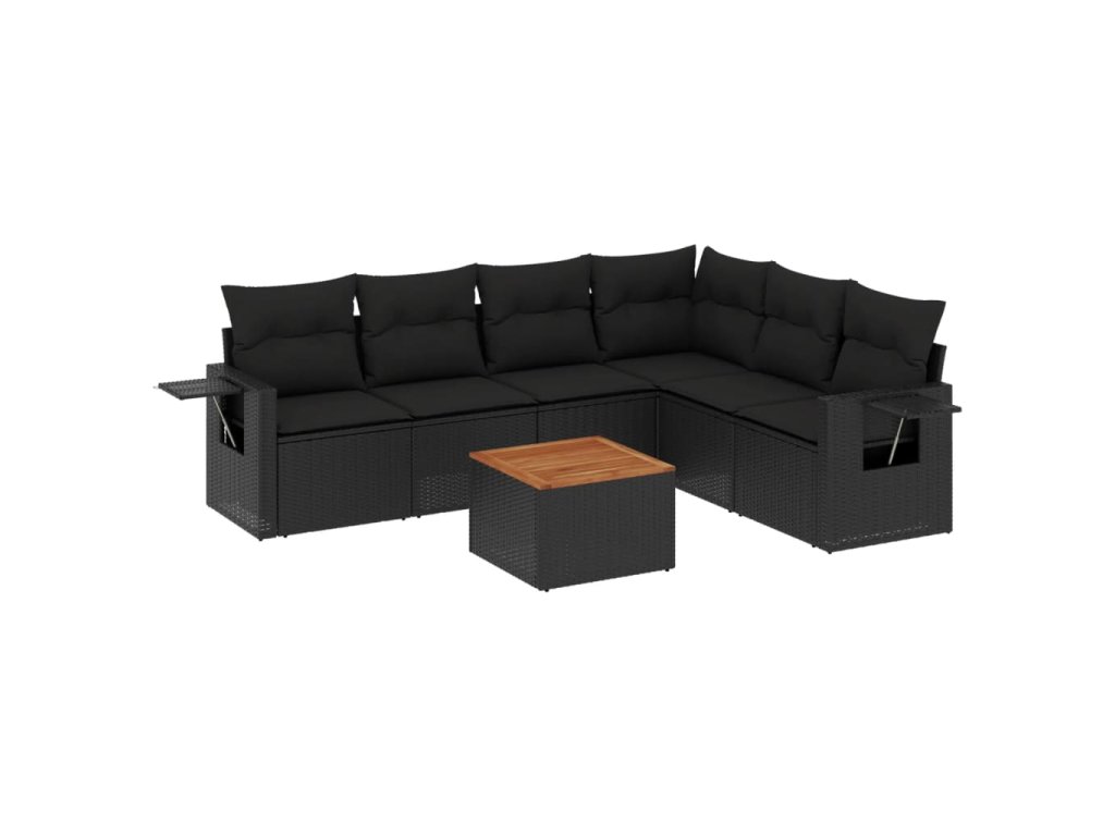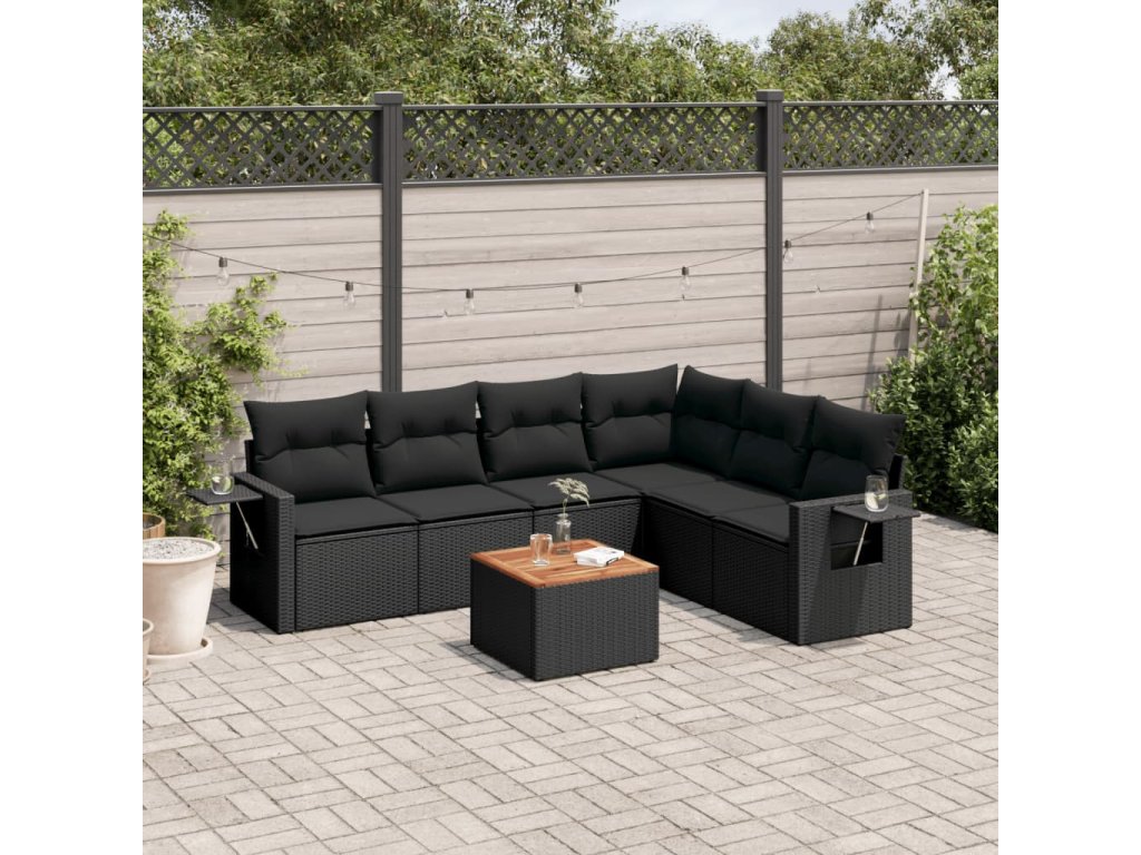 7dílná zahradní sedací souprava s poduškami černá polyratan 3224578