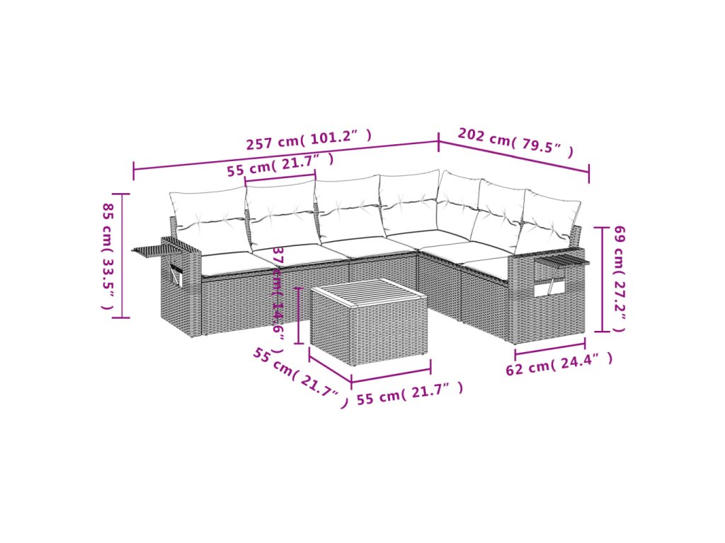 Tato zahradní sedací souprava je dokonalým doplňkem vaší zahrady, terasy nebo dvorku a poskytne vám pohodlné a příjemné místo, kde si můžete povídat s rodinou a přáteli nebo jen tak odpočívat a užívat si pobyt venku.