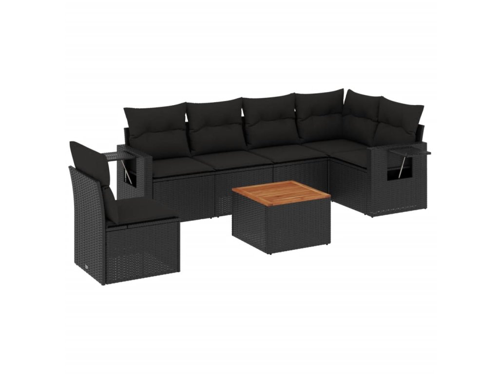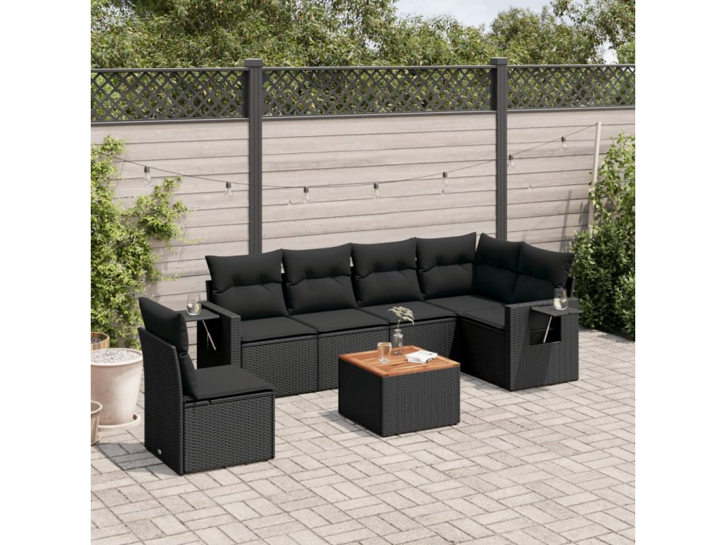 7dílná zahradní sedací souprava s poduškami černá polyratan 3224585