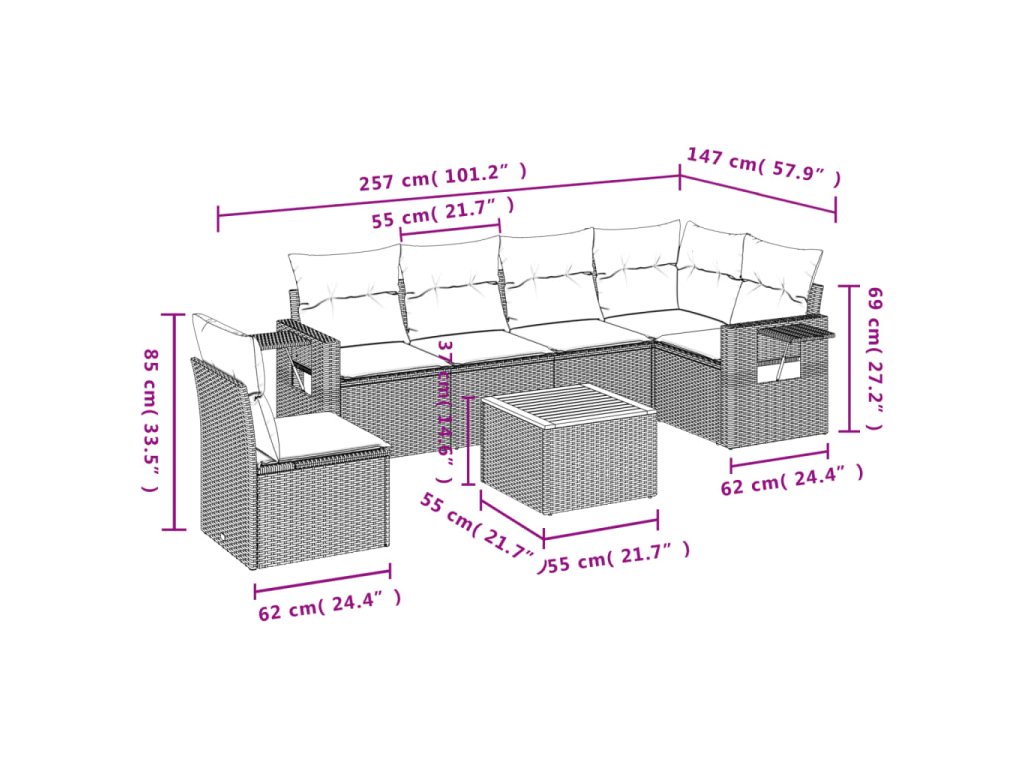 Tato zahradní sedací souprava je dokonalým doplňkem vaší zahrady, terasy nebo dvorku a poskytne vám pohodlné a příjemné místo, kde si můžete povídat s rodinou a přáteli nebo jen tak odpočívat a užívat si pobyt venku.