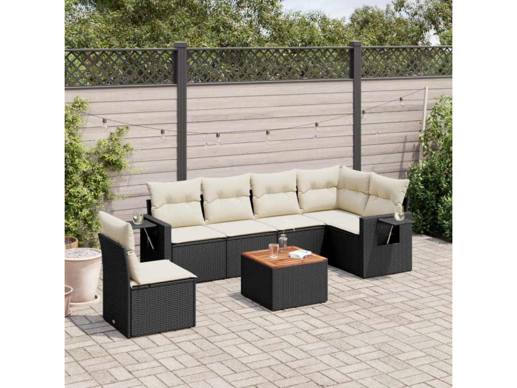 7dílná zahradní sedací souprava s poduškami černá polyratan 3224586