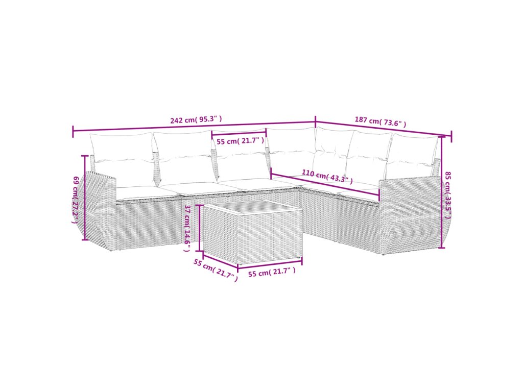 Tato zahradní sedací souprava je dokonalým doplňkem vaší zahrady, terasy nebo dvorku a poskytne vám pohodlné a příjemné místo, kde si můžete povídat s rodinou a přáteli nebo jen tak odpočívat a užívat si pobyt venku.