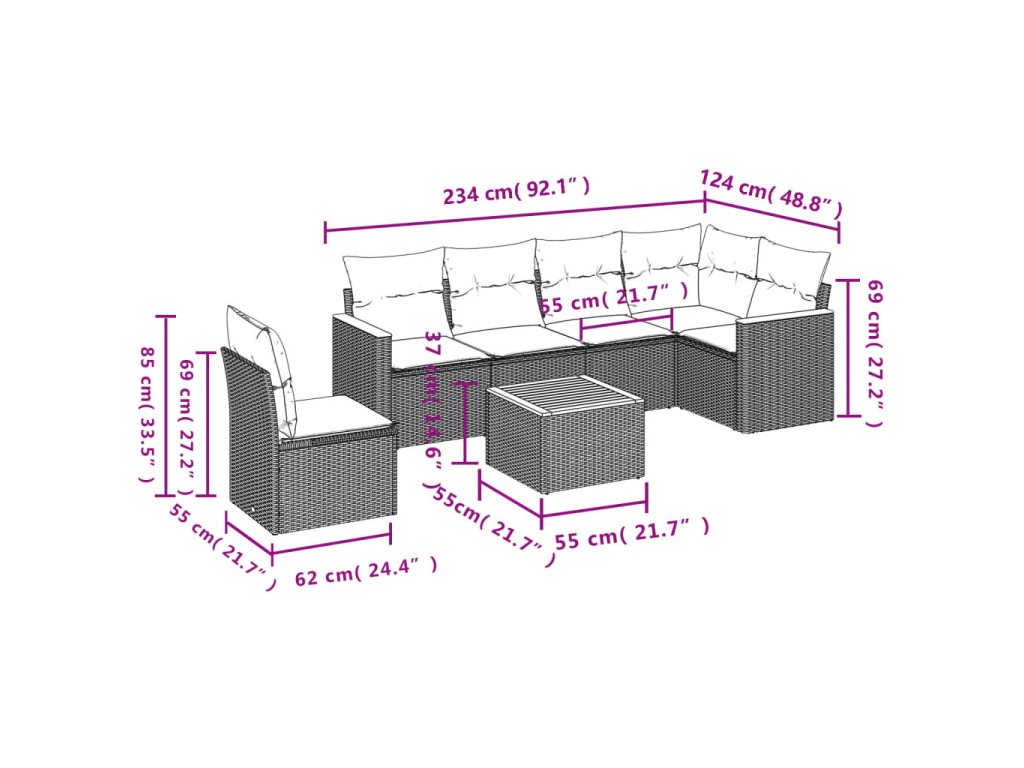 Tato zahradní sedací souprava je dokonalým doplňkem vaší zahrady, terasy nebo dvorku a poskytne vám pohodlné a příjemné místo, kde si můžete povídat s rodinou a přáteli nebo jen tak odpočívat a užívat si pobyt venku.