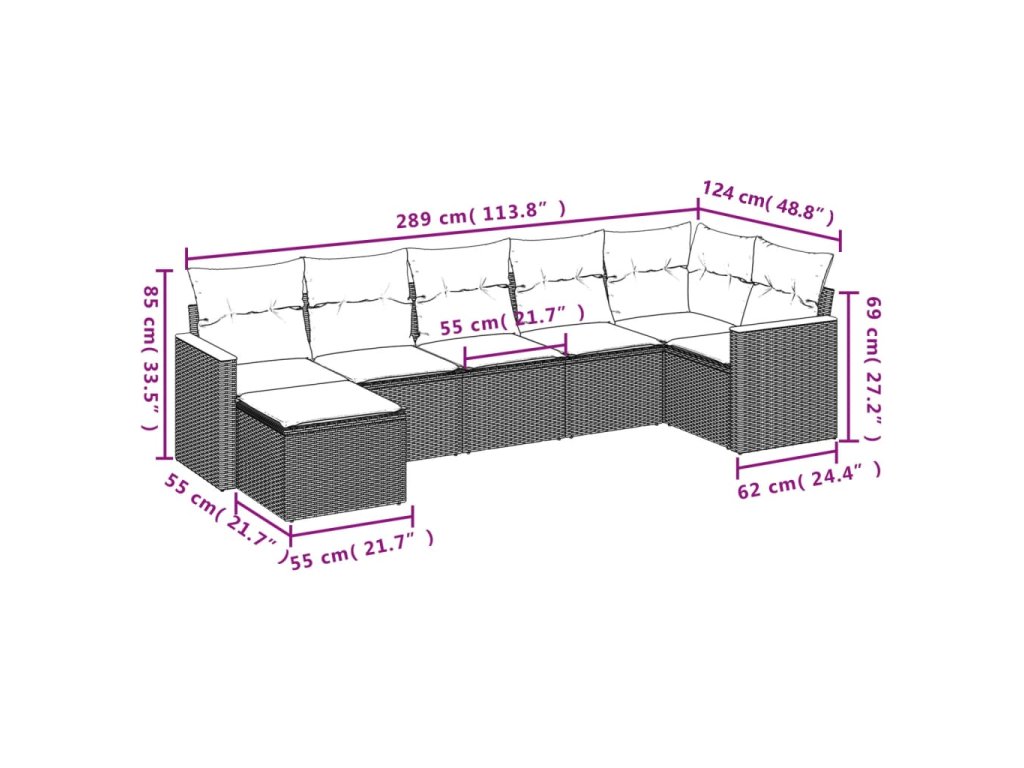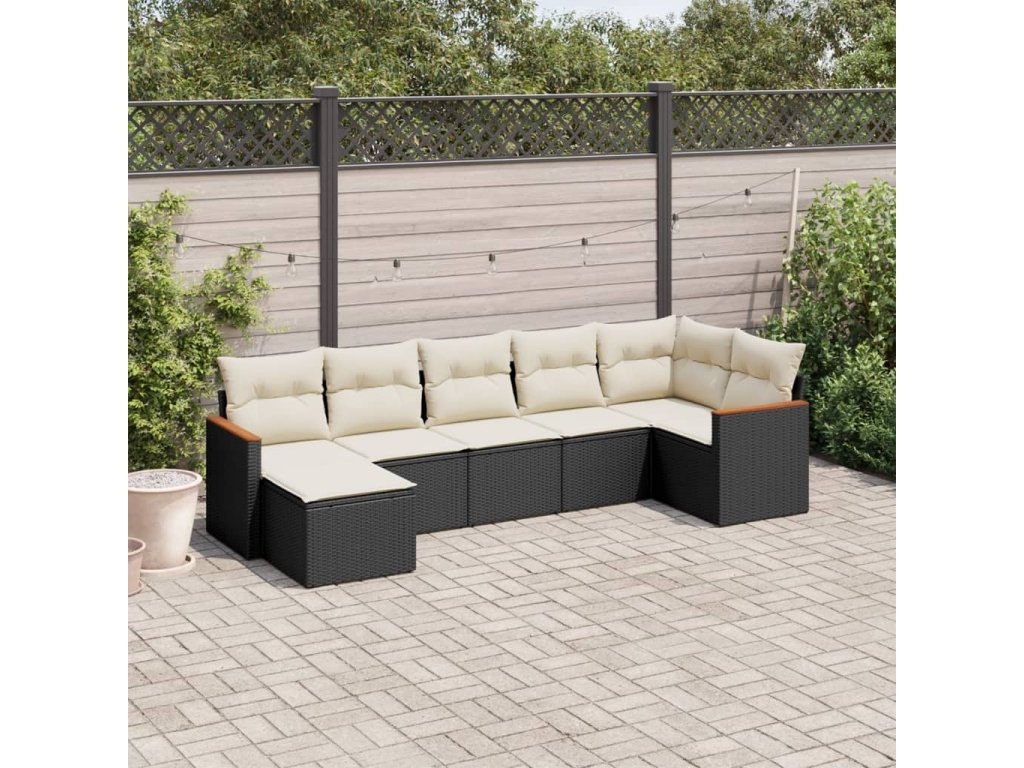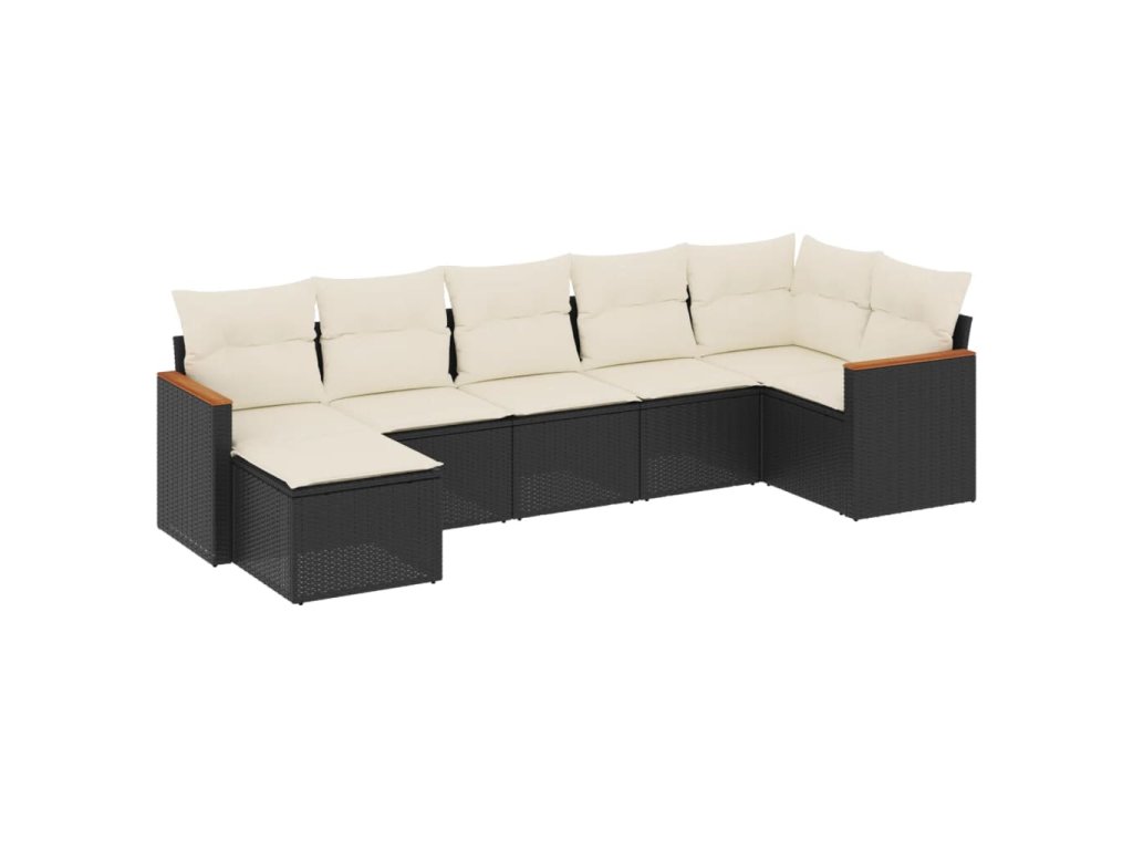 7dílná zahradní sedací souprava s poduškami černá polyratan 3226189