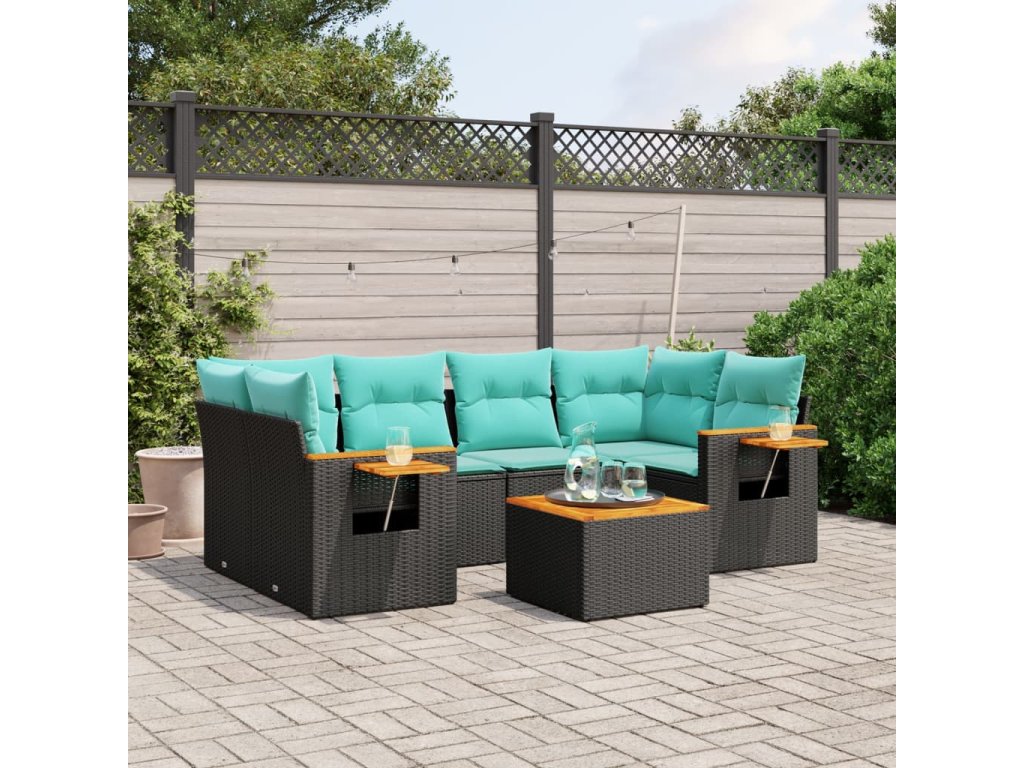 7dílná zahradní sedací souprava s poduškami černá polyratan 3226638