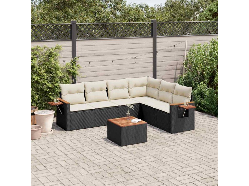 7dílná zahradní sedací souprava s poduškami černá polyratan 3226847