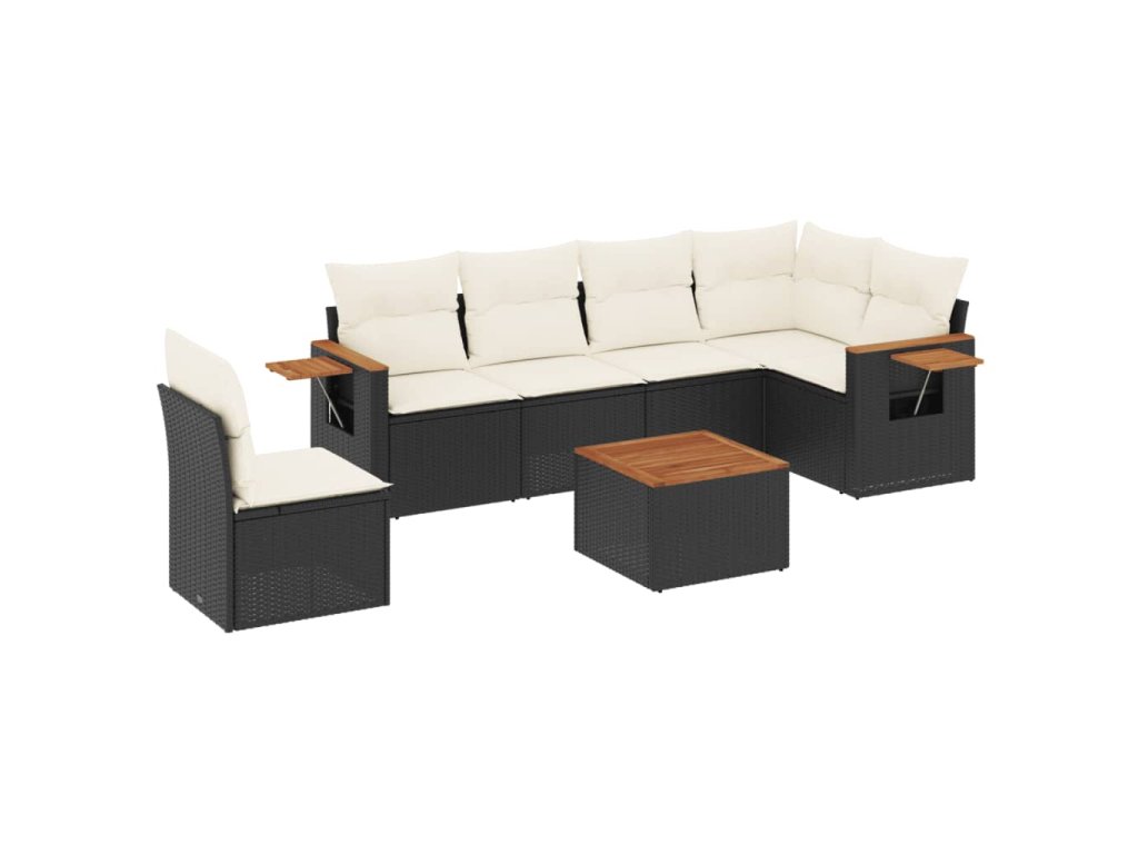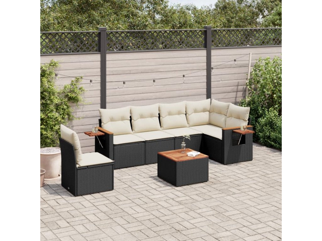 7dílná zahradní sedací souprava s poduškami černá polyratan 3226861