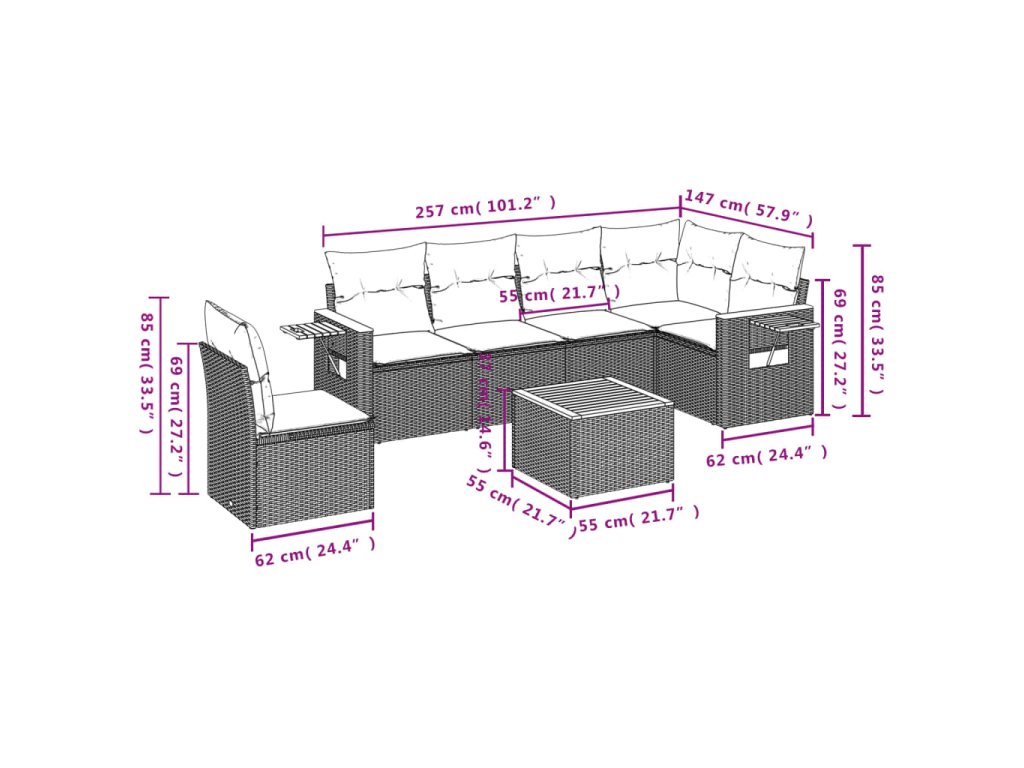 Tato zahradní sedací souprava je dokonalým doplňkem vaší zahrady, terasy nebo dvorku a poskytne vám pohodlné a příjemné místo, kde si můžete povídat s rodinou a přáteli nebo jen tak odpočívat a užívat si pobyt venku.