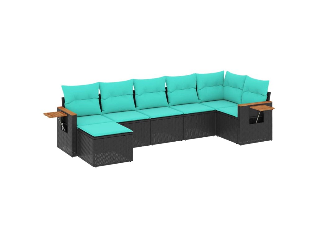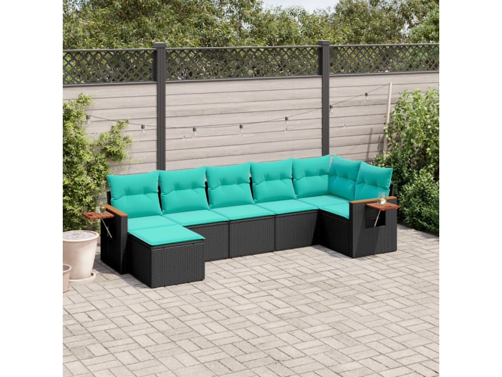 7dílná zahradní sedací souprava s poduškami černá polyratan 3227030